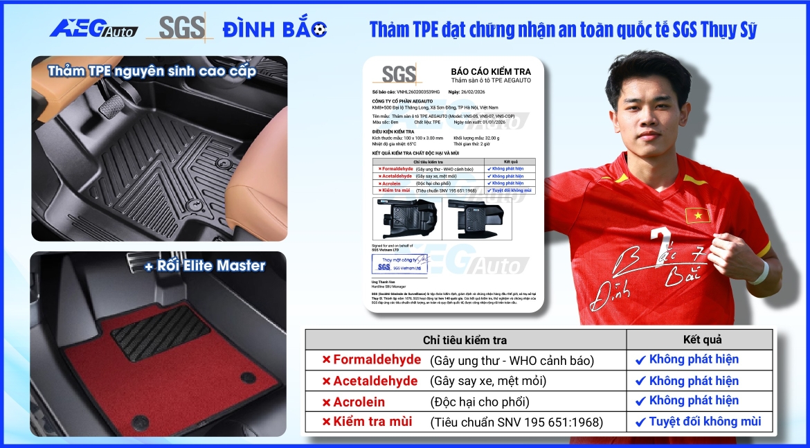 Bên cạnh thẩm mỹ sang trọng và độ bền vượt trội, AEGAuto vừa chính thức nhận được "tấm thẻ xanh" từ SGS – Tập đoàn kiểm định chất lượng hàng đầu thế giới.